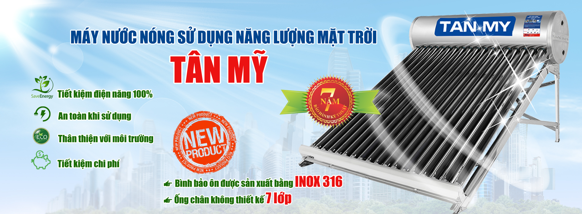 Tân Mỹ hiện đang là Đơn Vị có thương hiệu mạnh trên thị trường Việt Nam và Quốc Tế về các sản phẩm trong lĩnh vực kim khí như Gia dụng và Công nghiệp. Các sản phẩm chiến lược chủ chốt của Tân Mỹ bao gồm Bồn nước Inox, Bồn nhựa, Chậu rửa Inox, Máy nước nóng năng lượng mặt trời TITANIUM, Bình nước nóng thế hệ mới GALAXY, Nhôm định hình uy tín và nổi tiếng nhất hiện nay. Những thành tựu Tân Mỹ đã đạt được như ngày hôm nay bắt nguồn từ uy tín Lãnh Đạo, chính sách nhất quán trong sản xuất kinh doanh cùng với sự lỗ lực không ngừng của tập thể cán bộ công nhân viên trong Công ty với một mục tiêu duy nhất là cung cấp cho khách hàng những sản phẩm có chất lượng tốt nhất đem lại giá trị niềm tin bền vững !